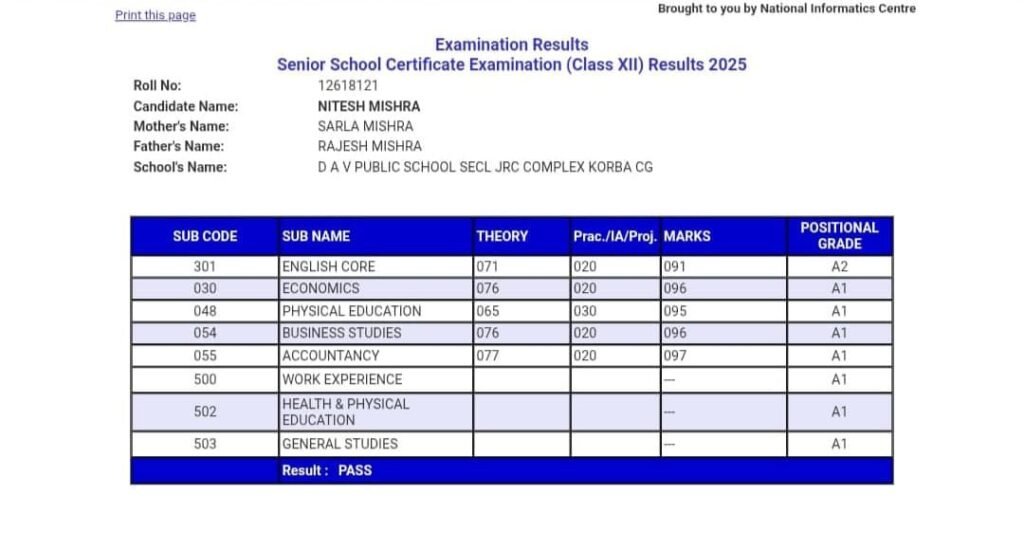 कोरबा, 13 मई 2025 — केंद्रीय माध्यमिक शिक्षा बोर्ड (CBSE) ने आज कक्षा 12वीं के परीक्षा परिणाम घोषित किए, जिसमें DAV पब्लिक स्कूल एसईसीएल कोरबा के छात्र नितेश मिश्रा ने वाणिज्य संकाय में 95% अंक प्राप्त कर विद्यालय में दूसरा स्थान हासिल किया है।