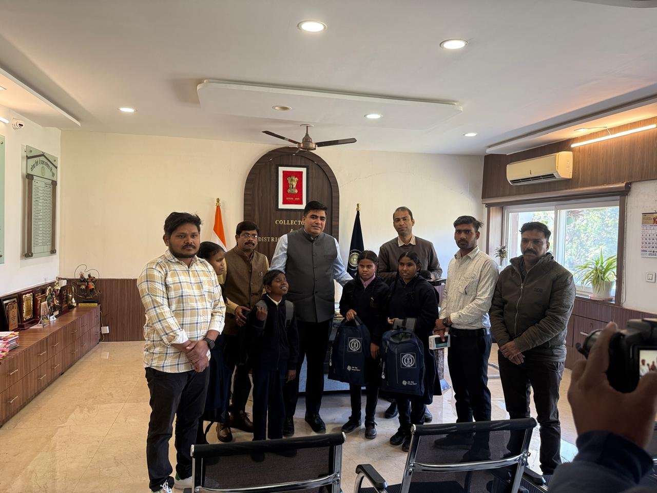 कोरबा। दिनांक 15 .1. 2026 को कलेक्ट्रेट कोरबा में समग्र शिक्षा अंतर्गत में जिले से 05 पूर्ण दृष्टि बाधित दिव्यांग बालक- बालिकाओं को समावेशी शिक्षा अंतर्गत समग्र शिक्षा रायपुर से प्राप्त एजुकेशनल कीट(स्मार्टफोन, स्मार्ट कैन, स्मार्ट वॉच ,स्टडी एलइडी लैंप ,मोबाइल स्कैनर स्टैंड ,सिग्नेचर गाइड ,टॉकिंग कैलकुलेटर,आदि) सामग्री का वितरण जिलाधीश कोरबा कुणाल ददावत के द्वारा बच्चों के शिक्षण में सहयोग व digitalization को बढ़ावा देने व दिव्यांग बच्चों को आधुनिकीकरण शिक्षा से जोड़ने हेतु किट का वितरण जिला शिक्षा अधिकारी टी.पी. उपाध्याय ,जिला मिशन समन्वयक बल्लभ दास वैष्णव, बीआरपी (समावेशी शिक्षक ) जावेद अख्तर ,ज्वाला सिंह सोलंकी एवं श्रीमती अरुणा शर्मा और एक कदम और के एनजीओ से आशुतोष के उपस्थिति एवं समन्वय से किया गया।