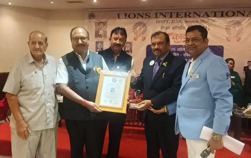 कल 5 अप्रैल 2026 को होटल ब्लू डायमंड कोरबा में आयोजित रीजन कान्फ्रेंस में डिस्ट्रिक्ट गवर्नर पीएमजेएफ लायन विजय अग्रवाल, रीजन चेयरमेन पीएमजेएफ लायन कैलाश गुप्ता एवं सम्मानीय पूर्व प्रान्तपालों व लायन सदस्यों की उपस्थिति में पीएमजेएफ लायन डाॅ. राजकुमार अग्रवाल को नीति आयोग एवं जीवन जागृति सेवा संस्थान द्वारा प्रदत्त परम विभूषण सेवा रत्न सम्मान से सम्मानित किया गया।