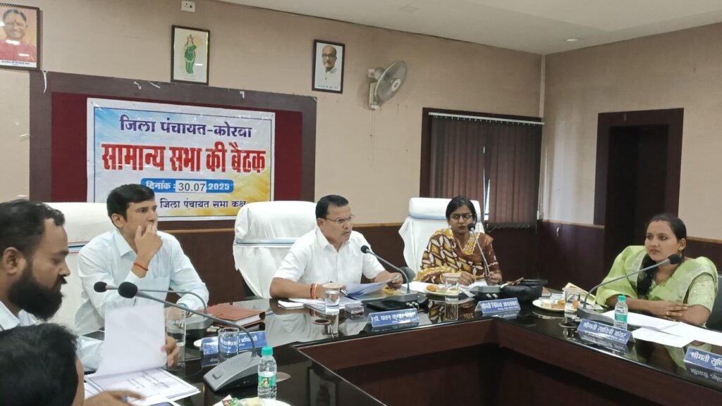 कोरबा। जिला पंचायत कोरबा के सभाकक्ष में सामान्य सभा की बैठक का आयोजन किया गया। बैठक की अध्यक्षता जिला पंचायत अध्यक्ष डॉ. पवन कुमार सिंह ने की। इस अवसर पर मुख्य कार्यपालन अधिकारी श्री दिनेश कुमार नाग सहित जिला स्तरीय अधिकारी एवं जनप्रतिनिधि उपस्थित रहे।