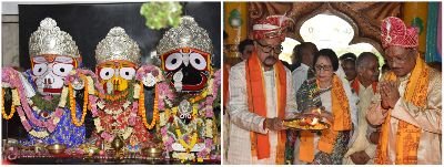रायपुर 27 जून 2025 । राज्यपाल रमेन डेका और मुख्यमंत्री श्री विष्णु देव साय आज गायत्री नगर रायपुर स्थित जगन्नाथ मंदिर में आयोजित महाप्रभु श्री जगन्नाथ की रथ यात्रा महोत्सव में शामिल हुए। राज्यपाल श्री डेका एवं मुख्यमंत्री श्री विष्णुदेव साय ने भगवान जगन्नाथ की पूजा अर्चना कर ‘छेरा-पहरा‘ की रस्म निभाई। राज्य की प्रथम महिला श्रीमती रानी डेका काकोटी ने श्री जगन्नाथ जी की विधि-विधान से पूजा अर्चना की।