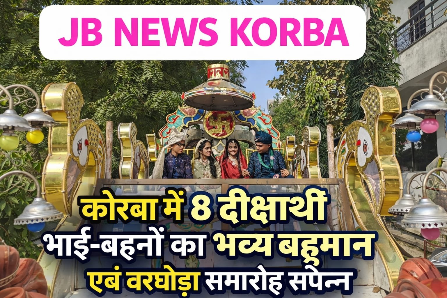 कोरबा जैन समाज के लिए 16 दिसंबर मंगलवार का दिन अत्यंत गौरवपूर्ण एवं ऐतिहासिक रहा। नगर में एक साथ 8 दीक्षारथी भाई-बहनों के पावन आगमन के अवसर पर सकल जैन समाज द्वारा भव्य वरघोड़ा एवं बहुमान समारोह का आयोजन श्रद्धा, भक्ति एवं उत्साह के साथ संपन्न हुआ।