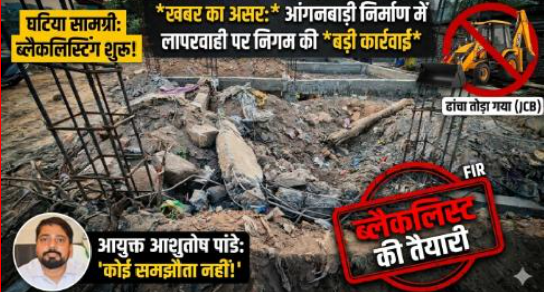 कोरबा छत्तीसगढ़ // आंगनबाड़ी केंद्र के निर्माण में घटिया सामग्री और गुणवत्ता में भारी लापरवाही का मामला सामने आने के बाद नगर निगम प्रशासन ने कड़ा रुख अपनाते हुए बड़ी कार्रवाई की है। नगर निगम आयुक्त आशुतोष पांडे के निर्देश पर दोषी एजेंसी के खिलाफ ब्लैकलिस्टिंग की प्रक्रिया शुरू कर दी गई है।