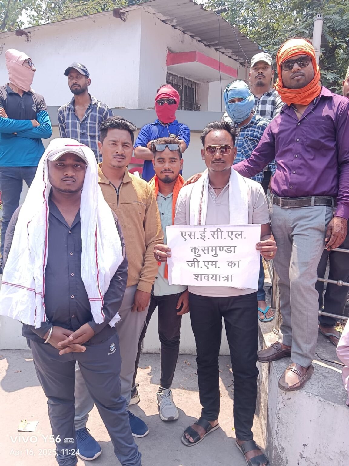 KORBA:कुसमुंडा GMकी शवयात्रा निकाली, भूविस्थापितों ने मुंडन कराया,शवदाह किया,आंदोलन जारी