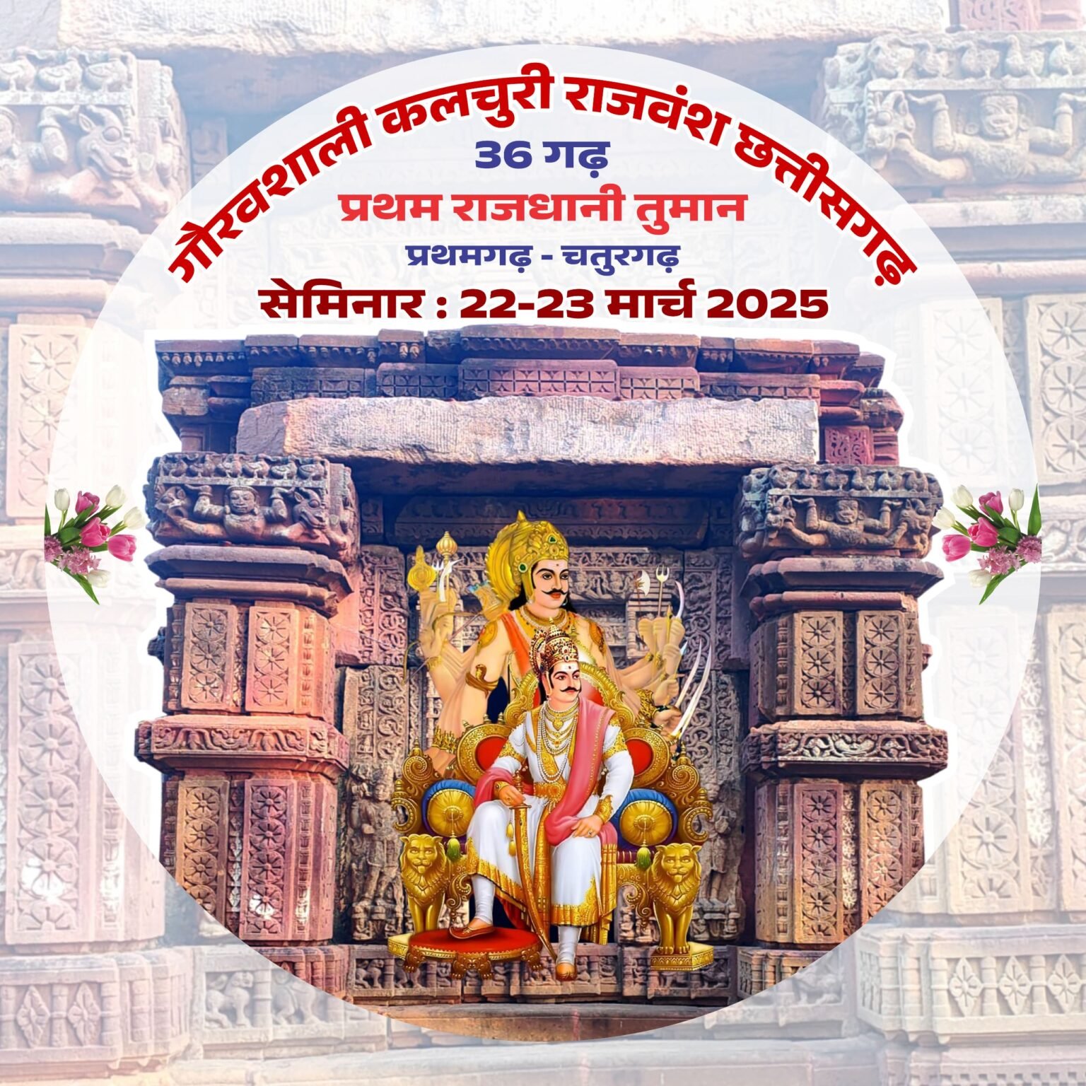कोरबा-कटघोरा। कलचुरी राजवंश इतिहास एवं पुरातत्व शोध समिति कोरबा छत्तीसगढ़, ग्राम तुमान में दो दिवसीय राष्ट्रीय संगोष्ठी का आयोजन किया गया है। जायसवाल कलार समाज के लोग एकत्रित होकर छत्तीसगढ़ में कल्चुरी शासन काल की धरोहर को लेकर बौद्धिक परिचर्चा किये। देश के प्रख्यात विश्वविद्यालयों से आये पुरातत्व के प्रोफेसर कल्चुरी सम्राज्य व उनकी धरोहर को संरक्षित रखने से लेकर आज की युवा पीढ़ी को कल्चुरी राजवंश के विषय पर विस्तृत जानकारी दिये।लोग एकत्रित होकर छत्तीसगढ़ में कल्चुरी शासन काल की धरोहर को लेकर बौद्धिक परिचर्चा हुए। देश के प्रख्यात विश्वविद्यालयों से आये पुरातत्व के प्रोफेसर कल्चुरी सम्राज्य व उनकी धरोहर को संरक्षित रखने से लेकर आज की युवा पीढ़ी को कल्चुरी राजवंश के विषय पर विस्तृत जानकारी दिए।