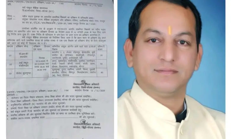 कोरबा। गुरु घासीदास जयंती 18 दिसंबर को होने के बावजूद कटघोरा विकासखंड शिक्षा अधिकारी द्वारा प्राथमिक विद्यालयों के शिक्षकों की एफएलएन ट्रेनिंग 16 दिसंबर से 20 दिसंबर तक निर्धारित किए जाने को लेकर शिक्षकों में नाराजगी है।