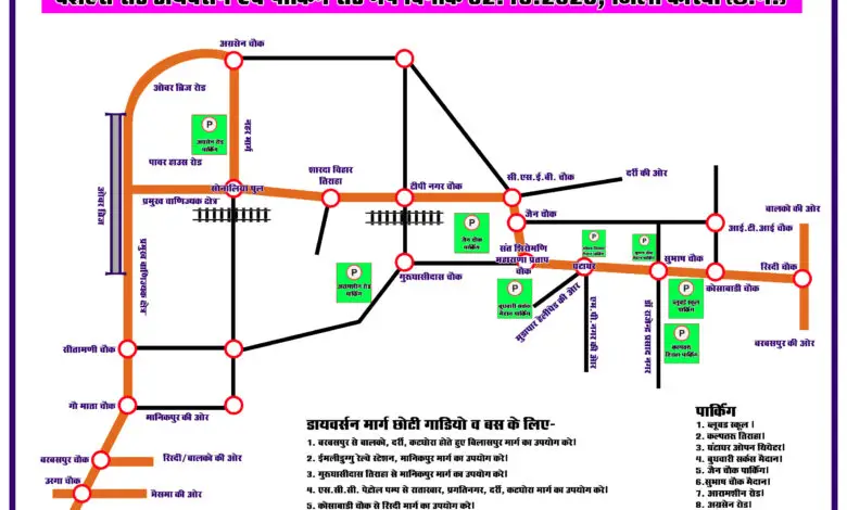 प्रशासन की ओर से जारी जानकारी के अनुसार रैली, बालको, दर्री, कटघोरा सहित अन्य मार्गों से आने वाले वाहनों को वैकल्पिक मार्ग का उपयोग करना होगा।