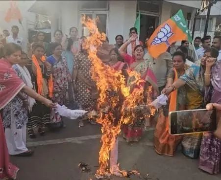 कोरबा. भारतीय जनता पार्टी महिला मोर्चा के प्रदेश नेतृत्व के आवाहन पर जिला कोरबा महिला मोर्चा द्वारा कथित यूथ कांग्रेस के कार्यकर्ताओं के विरोध में आक्रोश प्रदर्शन करते हुए पुतला दहन किया गया।
