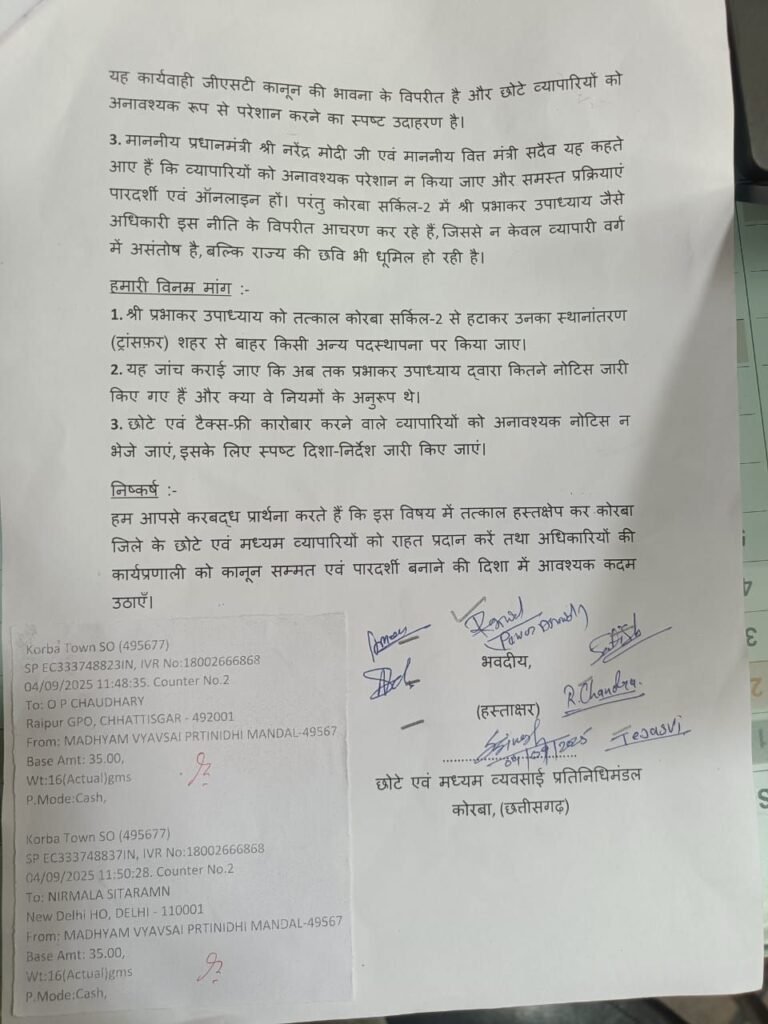 कोरबा: छोटे व्यापारियों का जीएसटी अधिकारी पर गंभीर आरोप, कार्रवाई की मांग