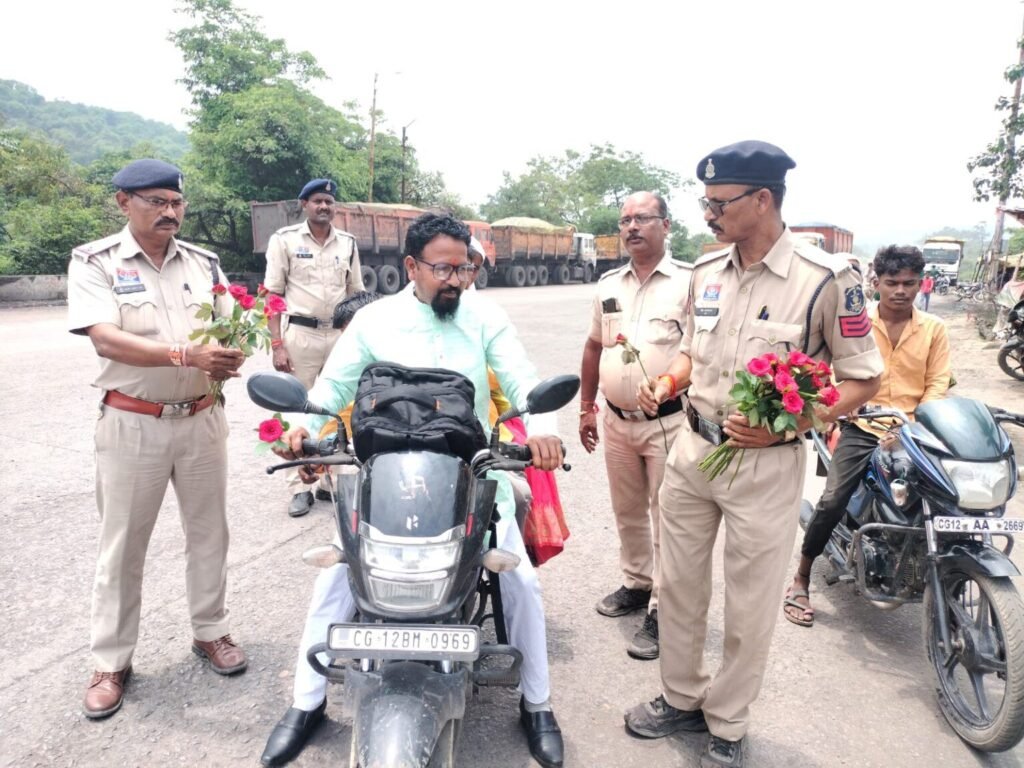 कोरबा। शनिवार को रक्षाबंधन पर्व के अवसर पर कुसमुंडा थाना प्रभारी निरीक्षक युवराज तिवारी तथा सर्वमंगला पुलिस चौकी प्रभारी ASI विभव तिवारी व स्टॉफ के द्वारा कम्युनिटी पुलिसिंग के तहत नवदृष्टि प्रशांति वृद्धाश्रम के बुजुर्गों का सम्मान किया गया व उनके साथ रक्षाबंधन त्यौहार की खुशियां बांटी गई। इसके अलावा सर्वमङ्गला चौक पर प्रभारी व स्टाफ ने यातायात नियमों का पालन करने की अपील करते हुए गुलाब के फूल भेंट कर रक्षाबंधन की शुभकामनाएं दी।