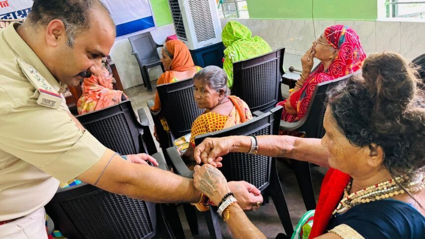 नवदृष्टि समाजसेवी संस्था द्वारा संचालित प्रशांति वृद्धाश्रम की महिलाओं ने टीआई युवराज तिवारी एवं चौकी प्रभारी विभव तिवारी तथा स्टॉफ की आरती उतारी और उन्हें रक्षासूत्र बांधा। टीआई श्री तिवारी ने आश्रम के समस्त बुजुर्गों का सम्मान करते हुए उनका आशीर्वाद तथा स्वास्थ्य की जानकारी ली। बुजुर्गों के साथ दोपहर का भोजन भी ग्रहण किया।