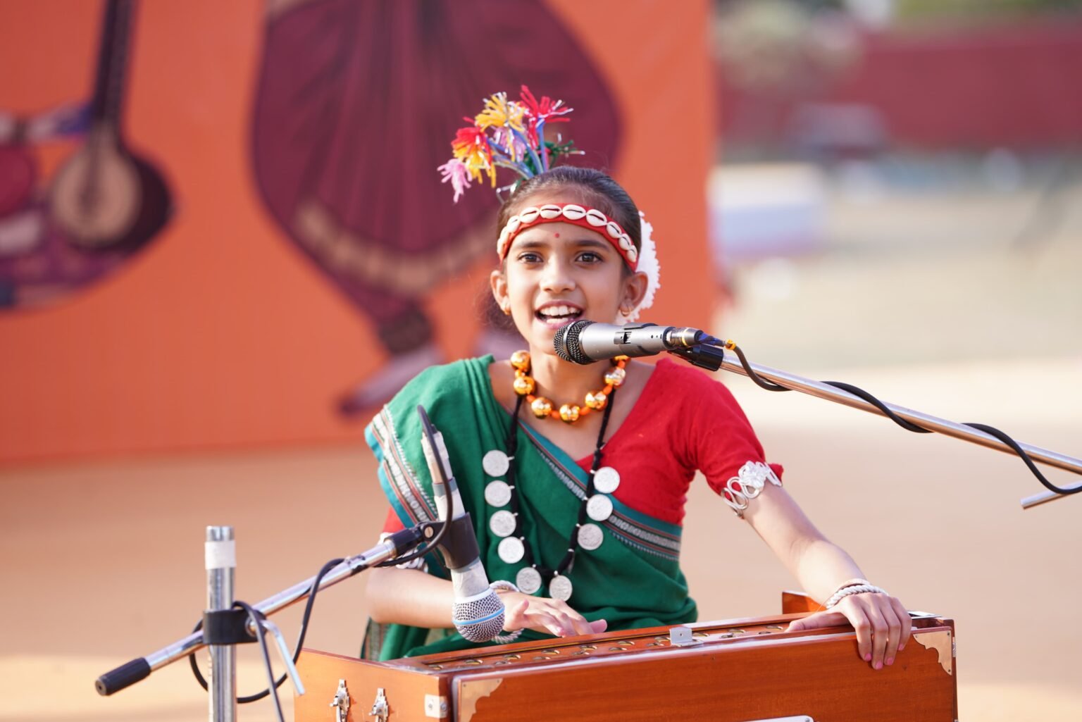रायपुर =नन्ही गायिका अरुणिमा ने मीर अली मीर क़े लिखें गीत नंदा जाही का रे… को जैसे ही हारमोनियम बजा कर गाना शुरू किया. उपस्थित श्रोता झूमने लगे और फोटो वीडियो लेने वाली की होड़ लग गईं. उनकी आवाज़ सुनकर दूसरे मंडप पर मौजूद खुद गीतकार मीर अली मीर जी ने उन्हें बुलवाकर उनके गायन को सराहा और बच्ची क़े साथ मंच से उतरकर खुद सेल्फी ली, परिजनों क़े साथ भी तस्वीर ली. उन्हें अपने एक और गीत जो बेटी क़े ऊपर है उसे भी गाने क़े लिए आमंत्रण दिया.