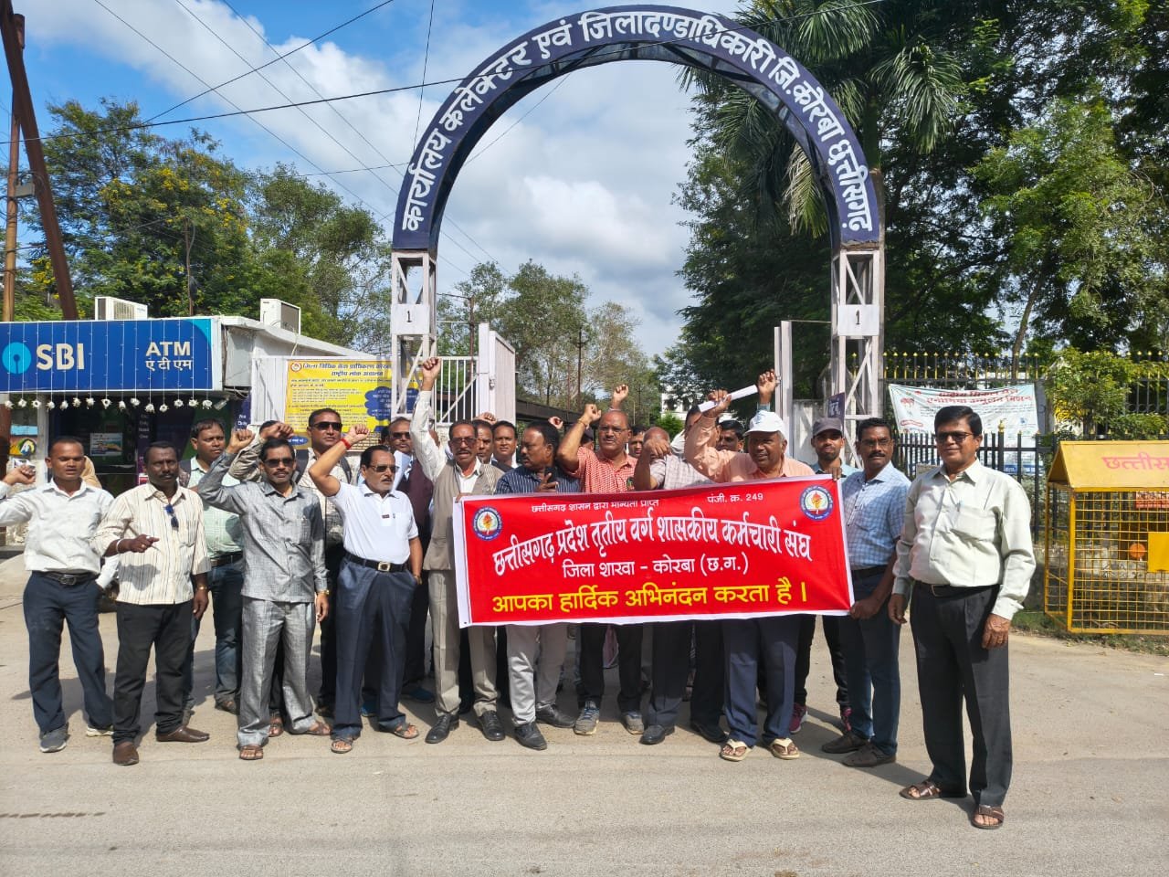 कोरबा — छत्तीसगढ़ प्रदेश तृतीय वर्ग शासकीय कर्मचारी संघ, जिला शाखा कोरबा के अध्यक्ष श्री विनय सोनवानी के नेतृत्व में प्रांतीय निकाय के आह्वान पर आज जिला कार्यालय में ज्ञापन सौंपा गया। यह ज्ञापन माननीय मुख्यमंत्री एवं मुख्य सचिव के नाम से डिप्टी कलेक्टर श्री मनोज बंजारे को सौंपा गया।