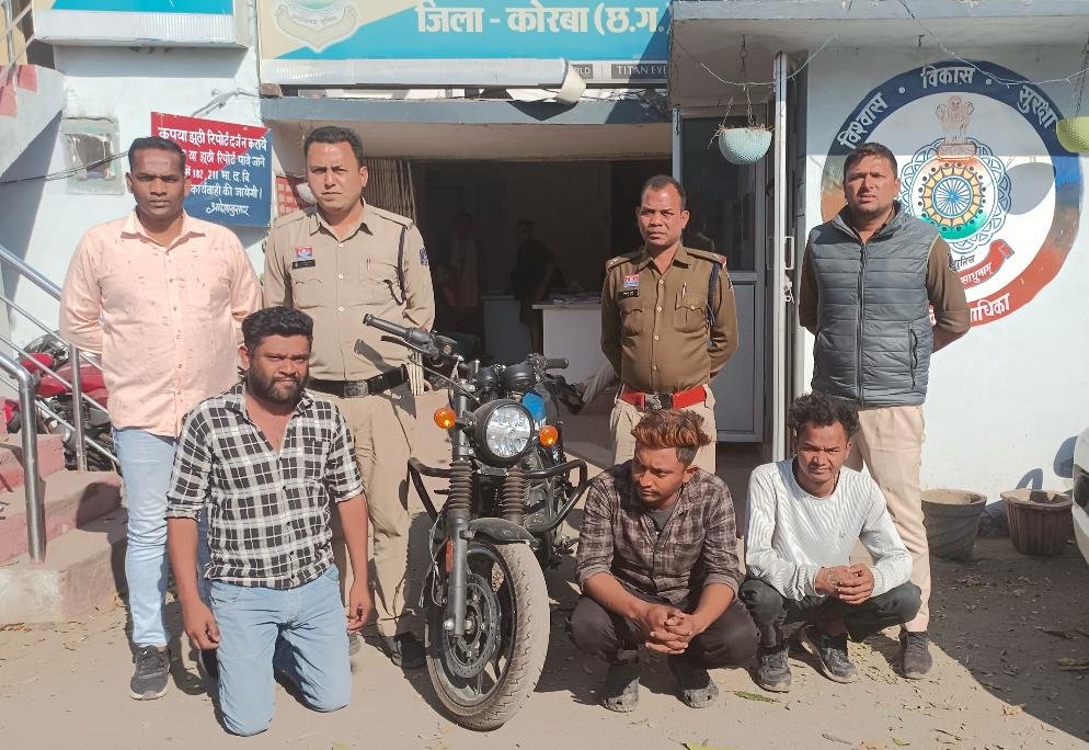 कोरबा जिले में अपराधों पर प्रभावी नियंत्रण के लिए चलाए जा रहे अभियान के तहत कोतवाली पुलिस को बड़ी सफलता मिली है। मोटरसाइकिल चोरी के एक मामले में पुलिस ने त्वरित कार्रवाई करते हुए तीन आरोपियों को गिरफ्तार कर चोरी की गई मोटरसाइकिल बरामद कर ली है।