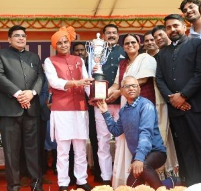 समारोह के मुख्य अतिथि कैबिनेट मंत्री श्री टंकराम वर्मा के हाथों महापौर एवं आयुक्त ने ग्रहण की ट्रॉफी