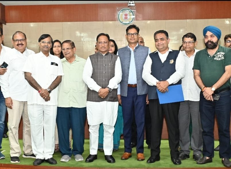 छत्तीसगढ़ चेम्बर ऑफ कॉमर्स एंड इंडस्ट्रीज के अध्यक्ष सतीश थौरानी के नेतृत्व में चेम्बर प्रतिनिधि मंडल के सदस्य संतोष जैन, तिलोक बरड़िया, वासुदेव जोटवानी, जसप्रीत सलूजा, शांतिलाल बरड़िया ने मुख्यमंत्री विष्णुदेव साय और वित्त मंत्री ओपी चौधरी से सौजन्य भेंट कर प्रधानमंत्री नरेंद्र मोदी जी और केंद्रीय वित्त मंत्री निर्मला सीतारमन के ऐतिहासिक निर्णय NextGenGST – GST 2.0 के लिए धन्यवाद ज्ञापित किया और प्रधानमंत्री जी के नाम आभार-पत्र सौंपा।