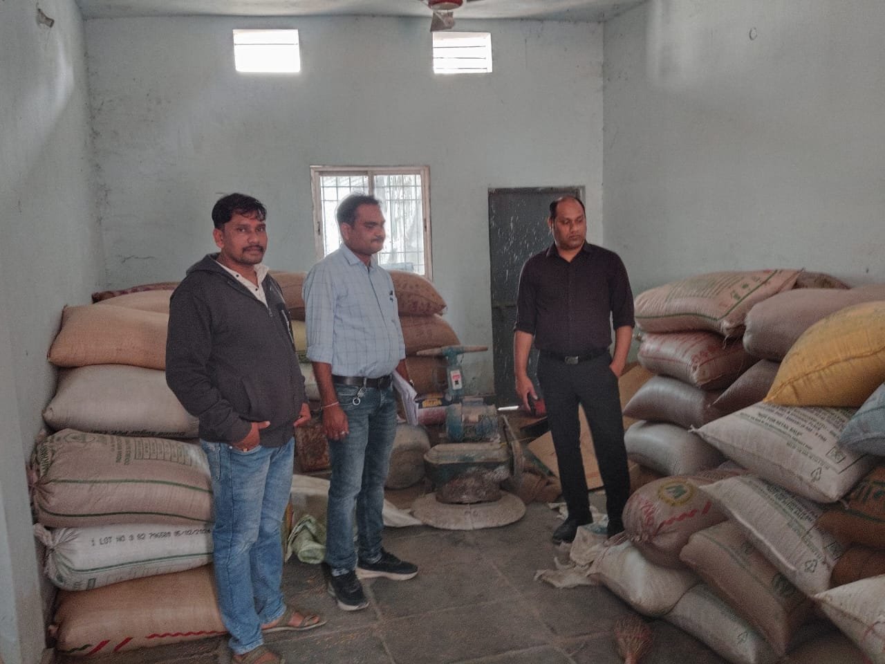 साहू जनरल स्टोर से 144 बोरी धान जप्त कर लिया है।