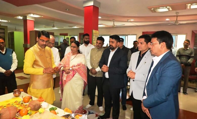 कोरबा 23 जनवरी 2026। बसंत पंचमी के पावन अवसर पर महापौर संजूदेवी राजपूत, सभापति नूतन सिंह ठाकुर व आयुक्त आशुतोष पाण्डेय ने निगम के सार्वजनिक वाचनालय सह लाईब्रेरी में वीणावादिनी माॅं सरस्वती की पूजा अर्चना की तथा नगर के अमनचैन एवं सुख शांति की कामना की। इस मौके पर अपर आयुक्त विनय मिश्रा सहित निगम के अन्य अधिकारी कर्मचारी उपस्थित थे।