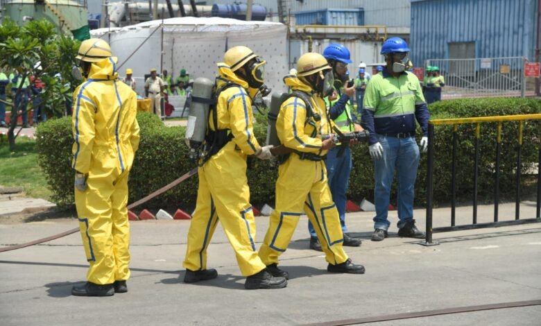 मॉक ड्रिल के दौरान कास्टिक सोडा टैंक के फ्लैंज से रिसाव की आभासी स्थिति बनाई गई। रिसाव का पता चलते ही ऑपरेटर ने तुरंत सेंट्रल कंट्रोल रूम को सूचना दी, जिसके बाद फायर, मेडिकल, सिक्योरिटी और रेस्क्यू टीमों को तुरंत अलर्ट किया गया। सभी आपातकालीन टीमें तेजी से मौके पर पहुंचीं और तय सुरक्षा प्रक्रियाओं का पालन करते हुए स्थिति को नियंत्रित किया। सफलतापूर्वक रिसाव को रोकने और स्थिति सामान्य होने के बाद साइट इंसिडेंट कंट्रोलर ने आपातकाल समाप्त घोषित किया और समीक्षा बैठक आयोजित की।