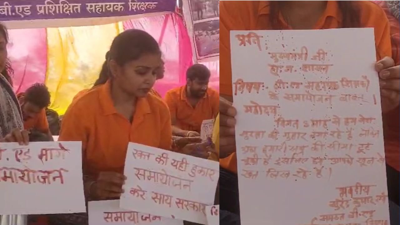 शिक्षकों ने अपने खून से पत्र लिखकर सरकार से अपील की है कि उन्हें जल्द से जल्द बहाल किया जाए। उनका कहना है कि पिछले तीन महीने से वे धरने पर बैठे हैं, लेकिन अब तक सरकार ने उनकी सुध नहीं ली।