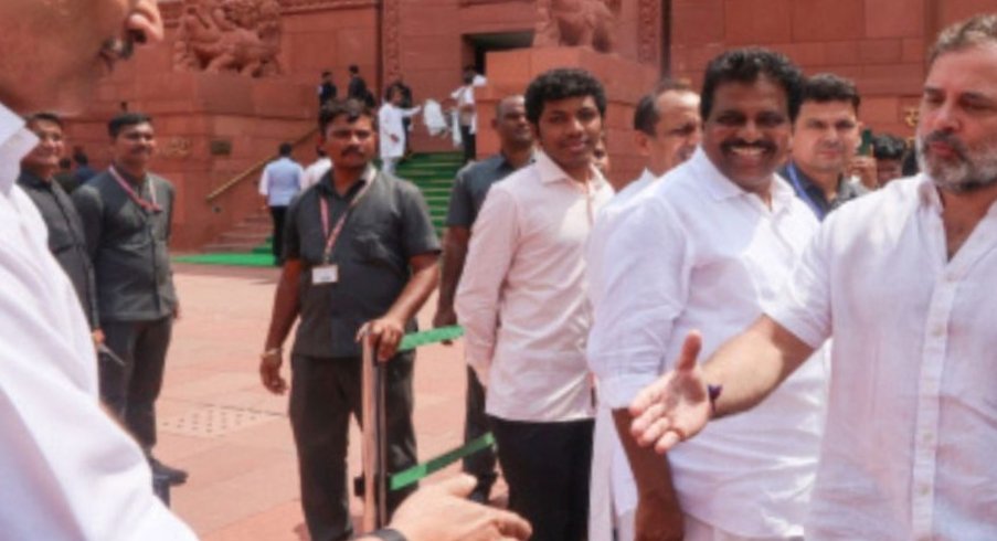 संसद में दिखा दुर्लभ नजारा: राहुल गांधी ने अचानक मिलाया बीजेपी सांसद से हाथ, मुस्कुराकर दी बधाई