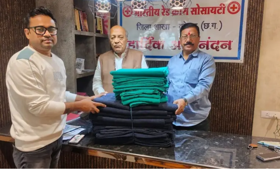 रेड क्रॉस सोसायटी कोरबा ने आयुष पोली क्लीनिक अस्पताल में मरीजों को कंबल-चादर वितरित