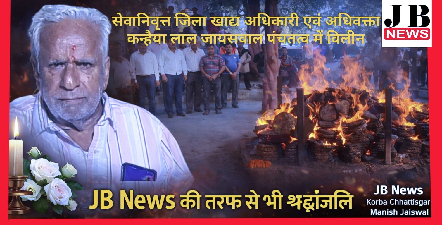 जिला पंचायत कोरबा के पूर्व उपाध्यक्ष एवं कन्हैया लाल जायसवाल के ज्येष्ठ पुत्र अजय जायसवाल ने अपने पिता की पंच भौतिक देह को मुखाग्रि दी। कन्हैया लाल जायसवाल की पंच भौतिक देह पंचभूत तत्व में विलीन हो गई। सभी पुत्रों की नेत्रों से अश्रु बह रहे थे।