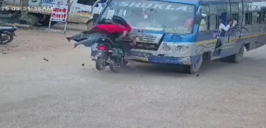 जिले के नवागढ़ क्षेत्र के राछाभांठा मुख्य मार्ग पर रविवार को एक दर्दनाक सड़क हादसा हुआ, जिसमें तेज रफ्तार बाइक अनियंत्रित होकर सामने से आ रही यात्री बस से जा टकराई। इस भीषण टक्कर में बाइक सवार तीन लोग गंभीर रूप से घायल हो गए, जिनमें एक महिला भी शामिल है। हादसा इतना भयावह था कि बाइक के परखच्चे उड़ गए और बस का अगला शीशा बुरी तरह क्षतिग्रस्त हो गया। जानकारी के अनुसार, यह घटना राछाभांठा मुख्य मार्ग पर उस समय हुई जब बाइक सवार शिवा देवार (24 वर्ष), इंद्रजीत देवार (25 वर्ष) और शिवानी (29 वर्ष) नवागढ़ की ओर जा रहे थे। इसी दौरान केरा रोड की ओर से आ रही शुक्ला बस से उनकी बाइक की सीधी टक्कर हो गई। प्रत्यक्षदर्शियों के मुताबिक, बाइक तेज रफ्तार में थी और चालक ने नियंत्रण खो दिया, जिसके कारण यह हादसा हुआ। टक्कर इतनी जोरदार थी कि बाइक के पीछे बैठी शिवानी उछलकर सड़क पर गिर पड़ी, जबकि शिवा और इंद्रजीत को भी गंभीर चोटें आईं।