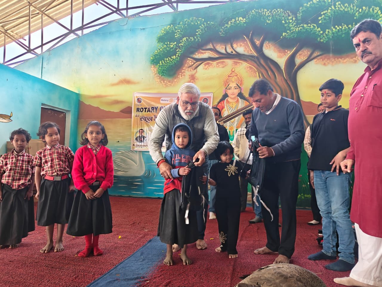 कार्यक्रम के मुख्य उद्देश्य के अंतर्गत रोटरी क्लब द्वारा बच्चों को स्कूल बैग, कपड़े, डायरी, पेंसिल, जूते एवं अन्य अध्ययन सामग्री उपहार स्वरूप वितरित की गई। क्लब का यह प्रयास बच्चों में शिक्षा के प्रति उत्साह बढ़ाने और उनके शैक्षणिक जीवन को सुगम बनाने की दिशा में एक महत्वपूर्ण कदम है।