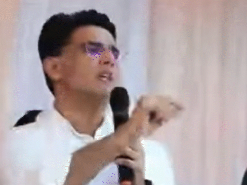 पायलट के पहुंचते ही पूर्व मंत्री से छीना माइक
