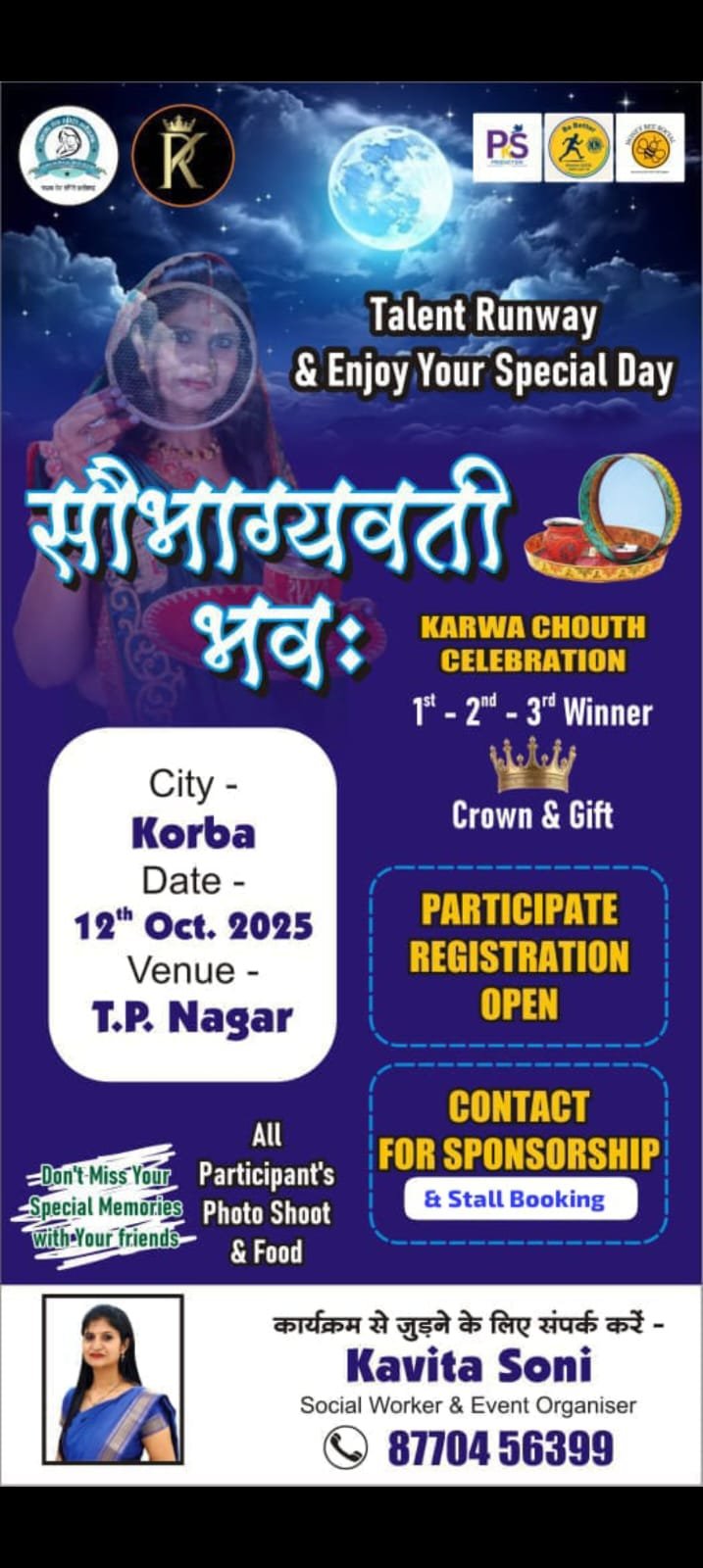 रायगढ़/बिलासपुर/कोरबा। करवा चौथ पर्व के उपलक्ष्य में “सौभाग्यवती भव: 2025 – प्री करवा चौथ” का भव्य आयोजन किया जा रहा है। इस खास अवसर पर सखियां एक साथ मिलकर त्यौहार की उमंग और पारंपरिक श्रृंगार की रौनक बढ़ाएंगी।