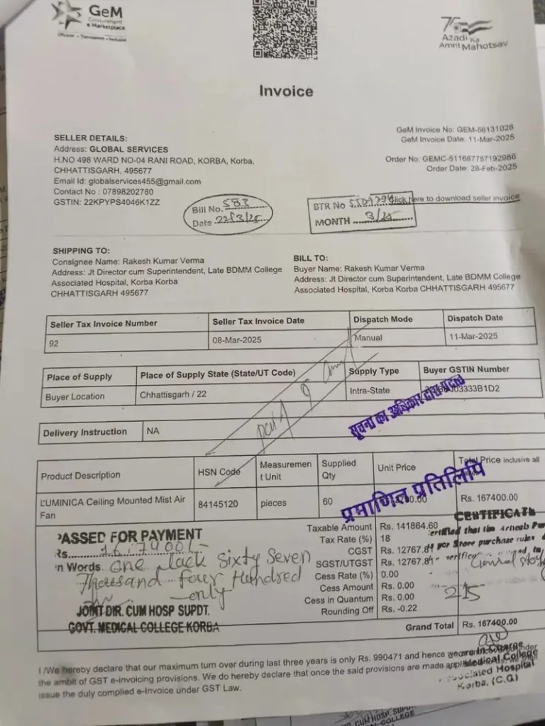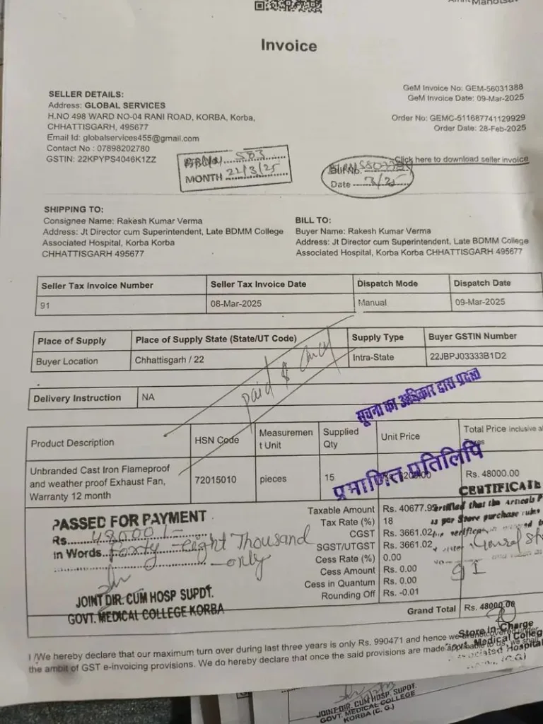 सरकारी नियम कहता है कि ₹3 लाख से अधिक की खरीदी में टेंडर अनिवार्य है। लेकिन एमएस ने ऐसा नहीं किया। जेम पोर्टल से खरीदी को छोटे-छोटे टुकड़ों में बांटा। बिल ऐसे काटे गए कि हर पेमेंट ₹3 लाख से नीचे दिखे। मगर असलियत यह कि एक ही फर्म को एक ही दिन कई बिल दिए गए। खेल इतना सफाई से रचा गया कि कागजों में सब कुछ दुरुस्त, और भीतर जेब में मोटा माल।