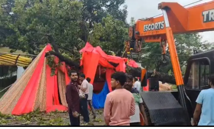 कॉलोनीवासियों ने बताया कि सुबह करीब 7:00 बजे एक तेज धमाका हुआ। लोग घरों से बाहर निकले तो देखा कि गणेश पंडाल के ऊपर लगभग 55 वर्ष पुराना विशालकाय वृक्ष गिरा हुआ है। पंडाल की बांस-बल्लियों से बनी संरचना दब गई थी, लेकिन अंदर सो रहे बच्चे और प्रतिमा सुरक्षित थे। मौके पर मौजूद कॉलोनीवासियों ने तुरंत बच्चों को बाहर निकाला।