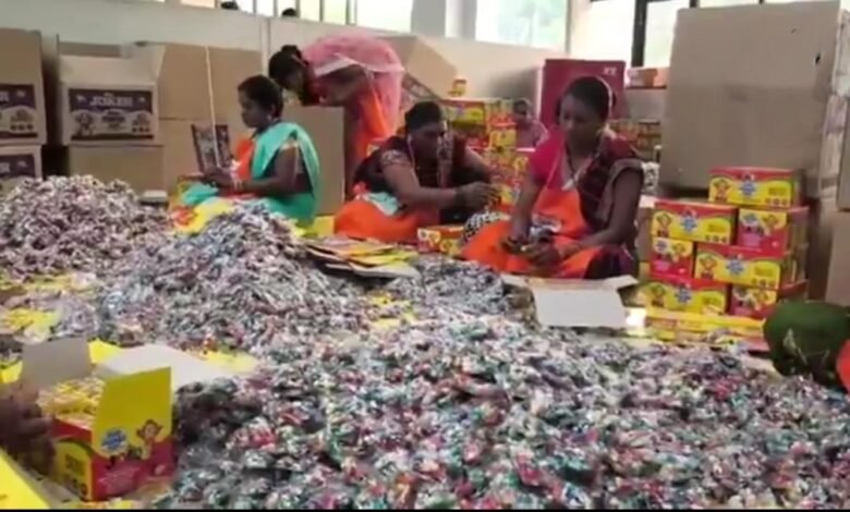 धमतरी जिले के ग्राम चटोद के स्वयं सहायता समूह से जुड़ी इन महिलाओं द्वारा ग्रीन पटाखों के निर्माण कार्य बहुत ही उत्साहित और बड़े ही लगन से कर रहे कार्य जिसकी सराहना कलेक्टर अविनाश मिश्रा ने उनके वेतन के रूप में 4 लाख 76 हजार रुपये का चेक सौंपा है, यह राशि श्री गणेशा फायर वर्क्स प्रा. लिमिटेड की ओर से प्रदान की गई है.