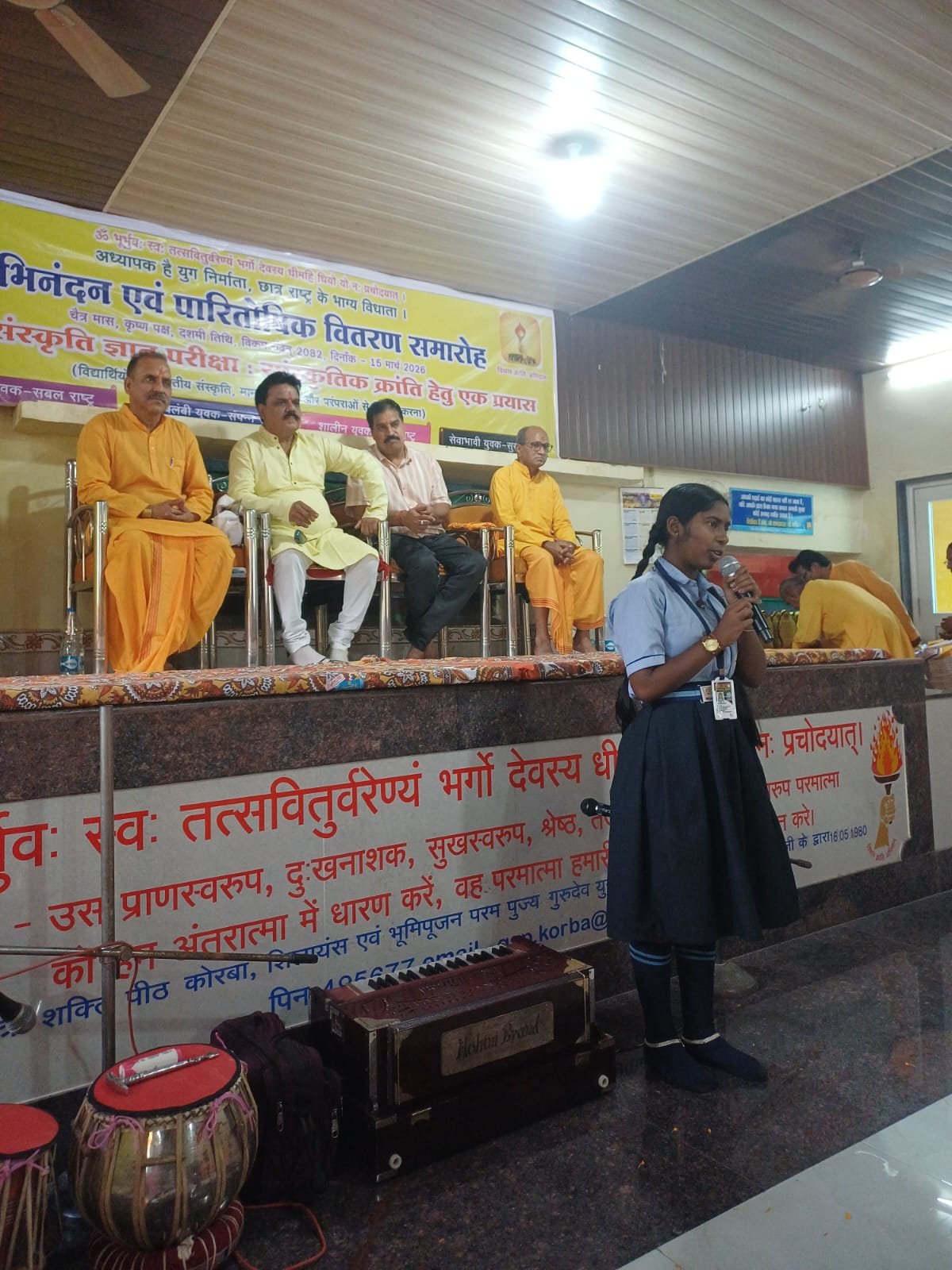 कोरबा। अखिल विश्व गायत्री परिवार शांतिकुंज हरिद्वार के सूक्ष्म संरक्षण एवं मार्गदर्शन मे देश विदेश में संचालित भारतीय संस्कृति ज्ञान परीक्षा 2025-26 में कोरबा जिला में उच्च स्थान पाने वाले छात्र / छात्राओं को मान. महापौर श्रीमती संजू देवी राजपूत, नगर निगम कोरबा के मुख्य आतिथ्य एवं श्री तामेश्वर उपाध्याय, जिला शिक्षा अधिकारी तथा श्री राजेन्द्र पाण्डेय,पूर्व जिलाध्यक्ष भाजपा, जिला कोरबा के विशिष्ट आतिथ्य में गायत्री शक्ति पीठ कोरबा में प्रातः 10.30 बजे सम्मानित किया गया।